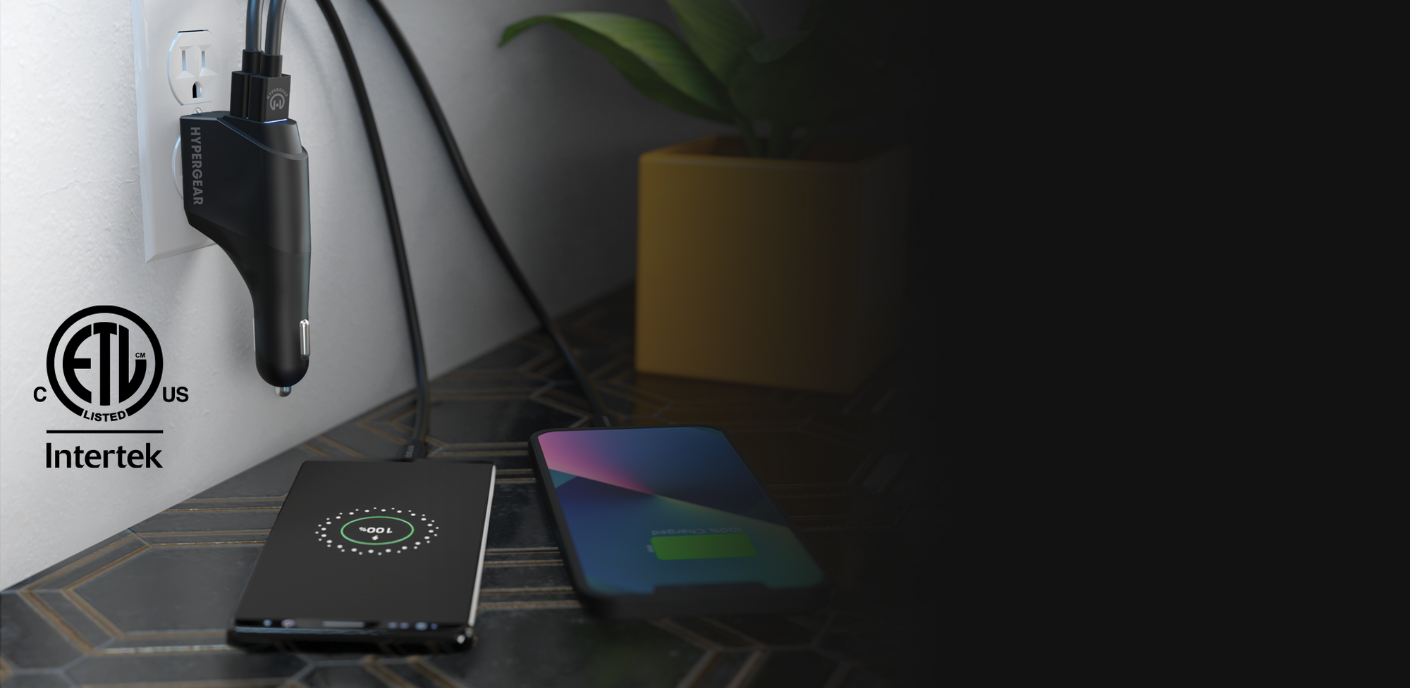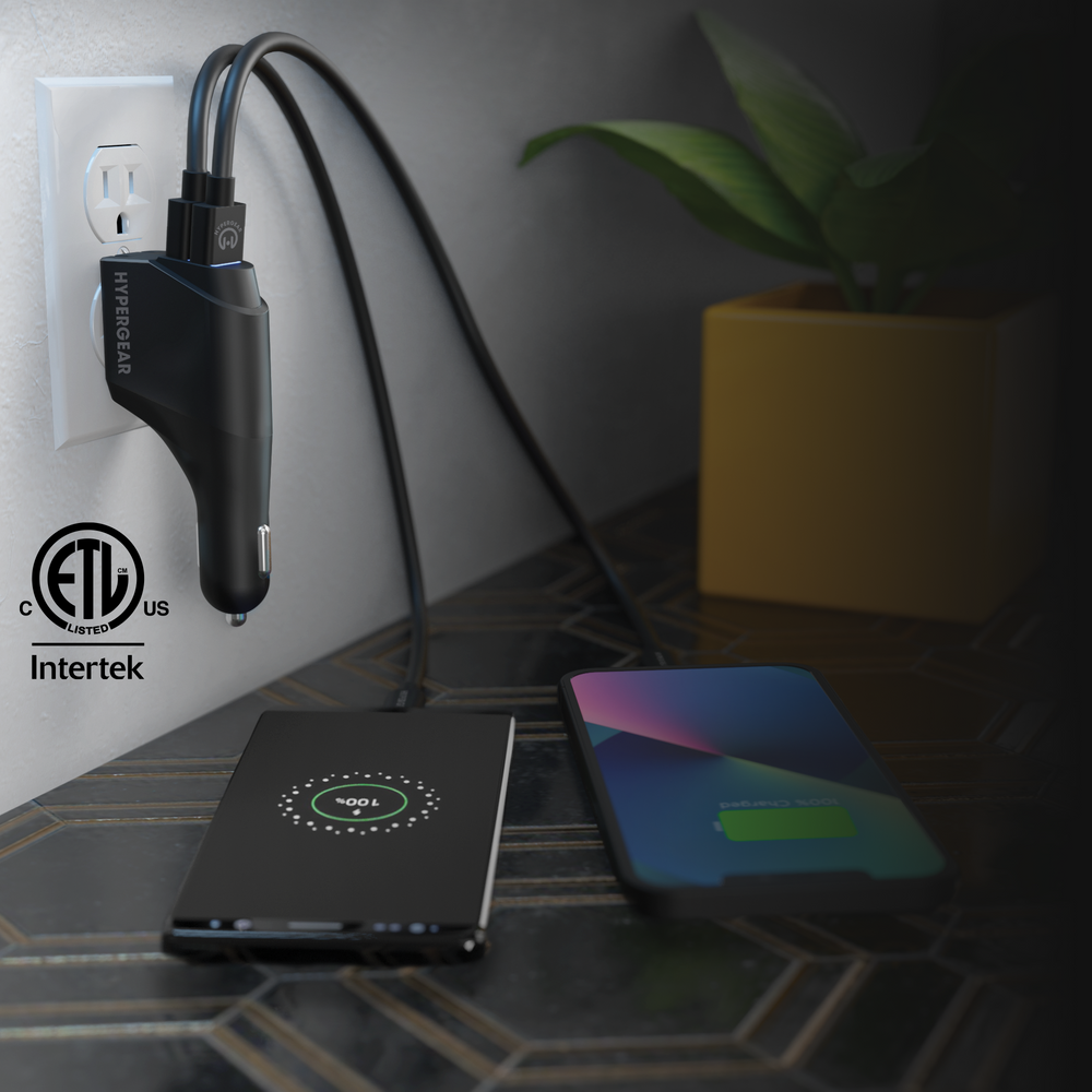 Plug into any wall outlet or car console for high-speed charging anywhere you go!