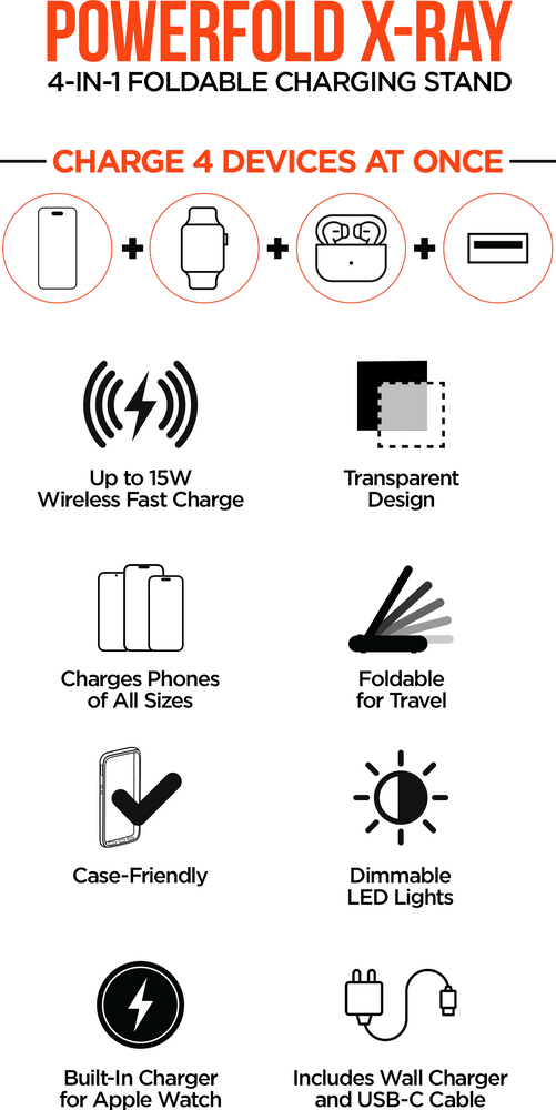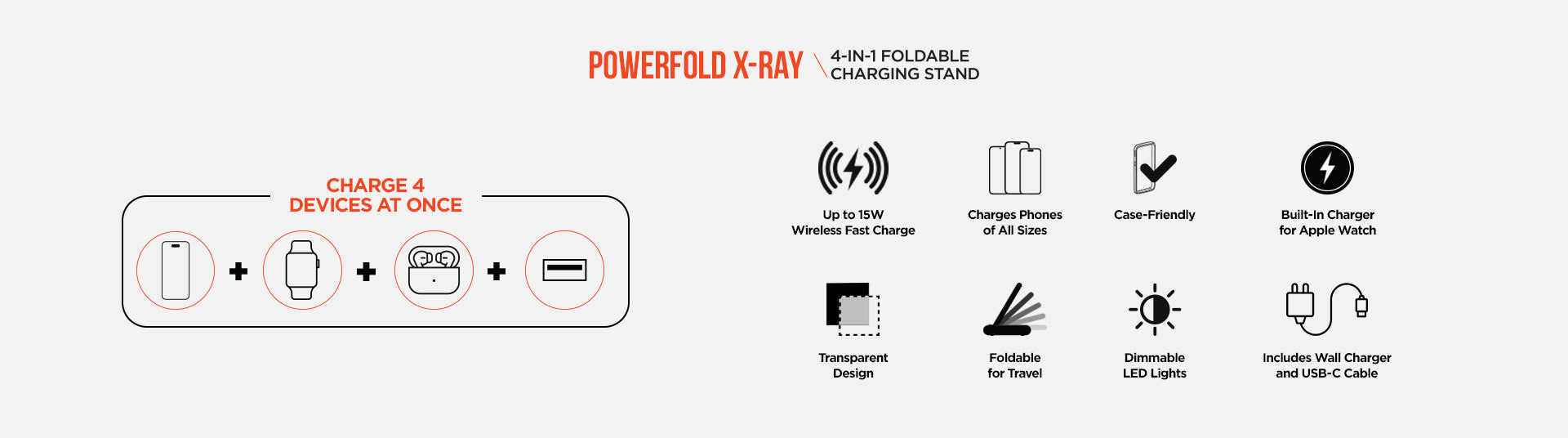 PowerFold X-Ray comes with a 20W USB-C PD wall adapter and a 3ft USB-C cable, so you can start charging right away.