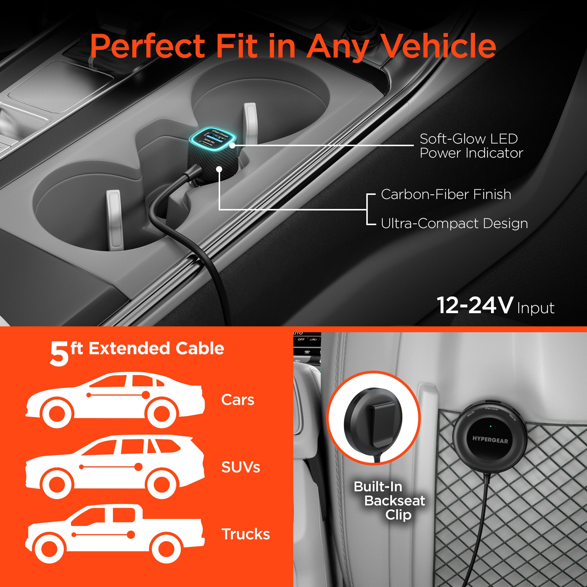 SpeedBoost 25W USB-C PD + 12W USB Fast Car Charger with PPS | Includes 4ft USB-C Cable | Black