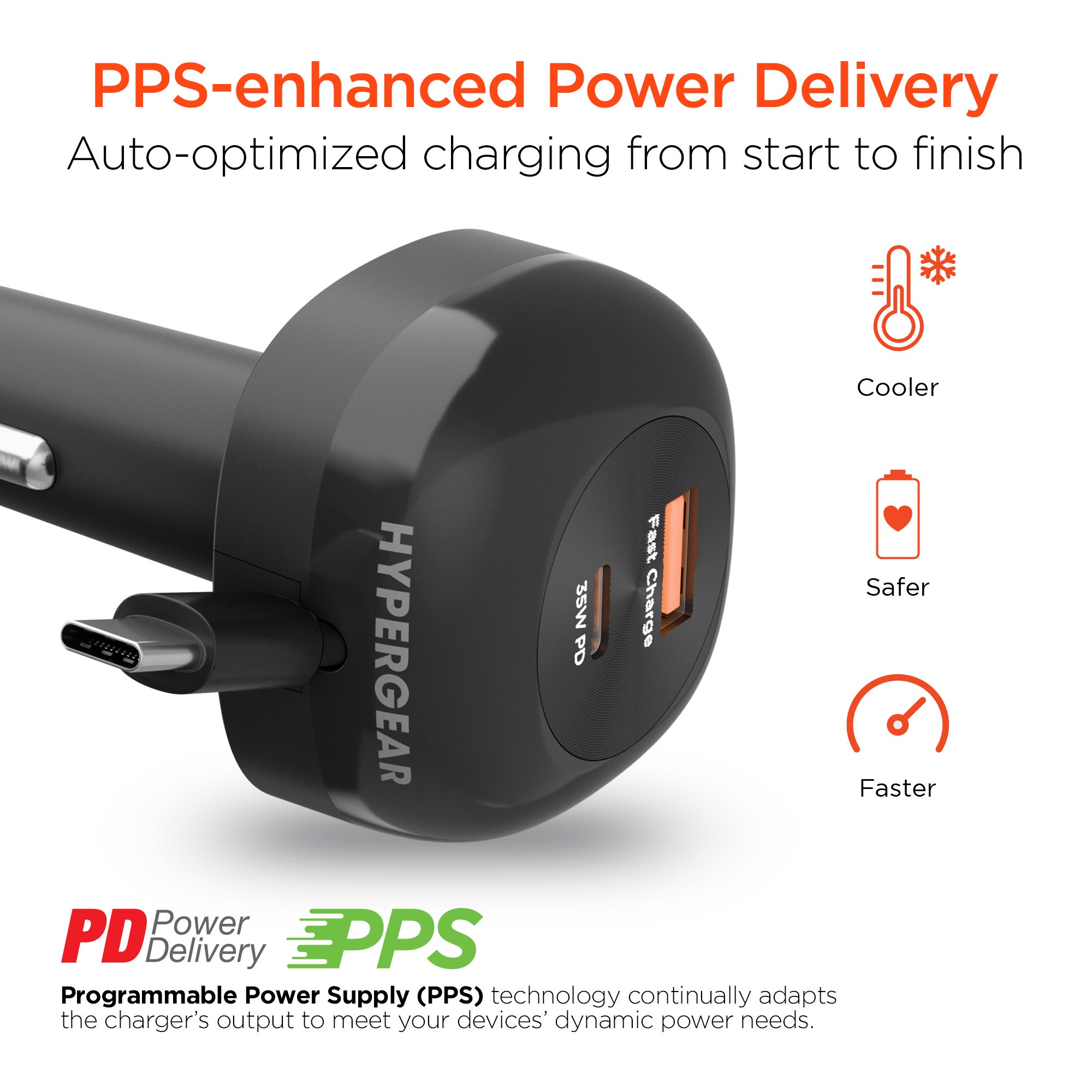 SpeedBoost 25W USB-C PD + 12W USB Fast Car Charger with PPS | Includes 4ft USB-C Cable | Black