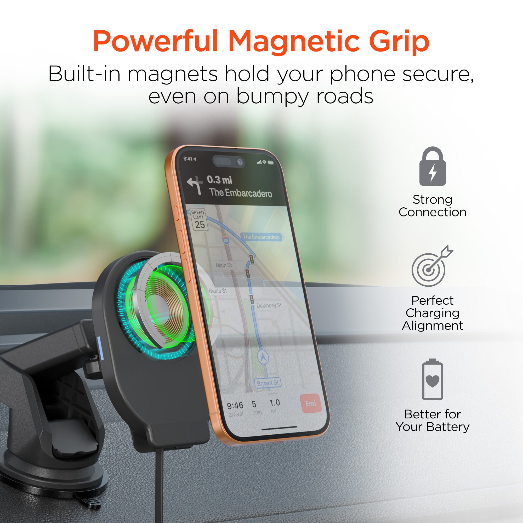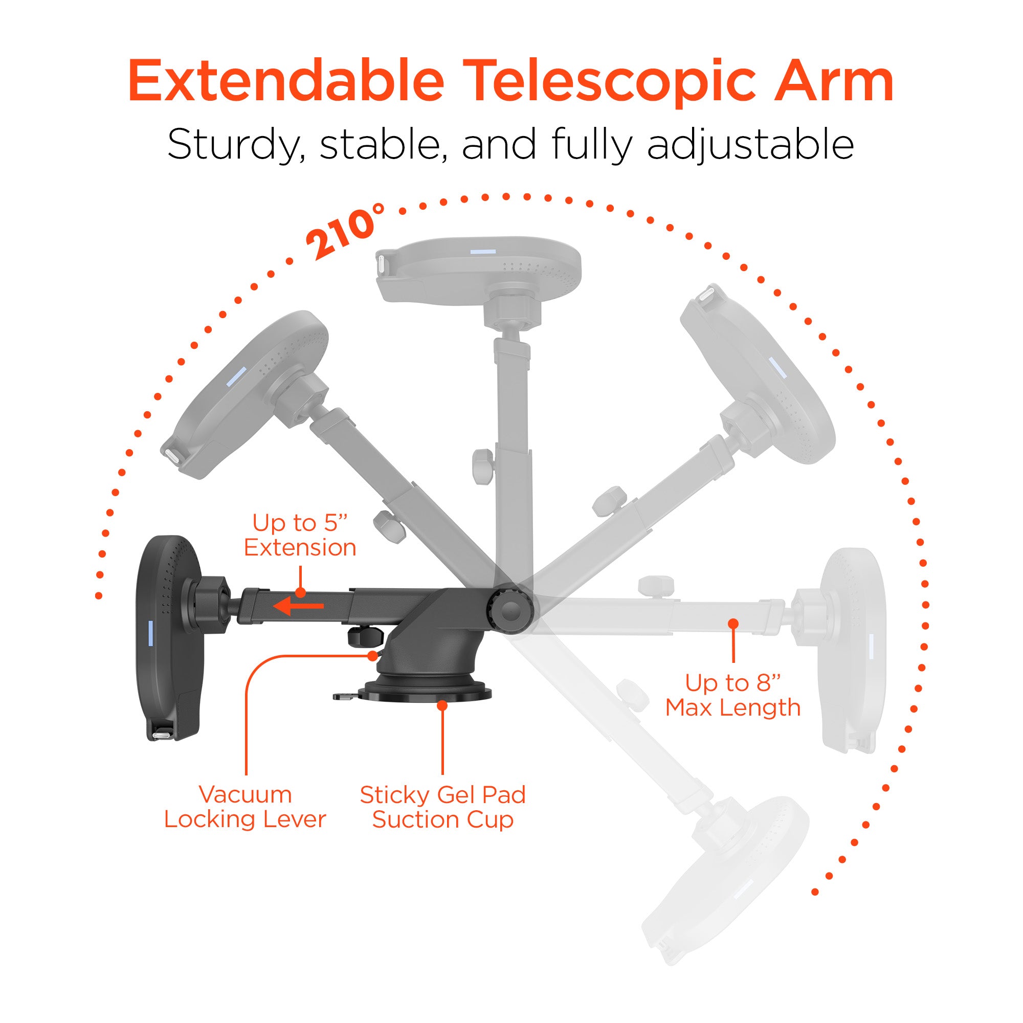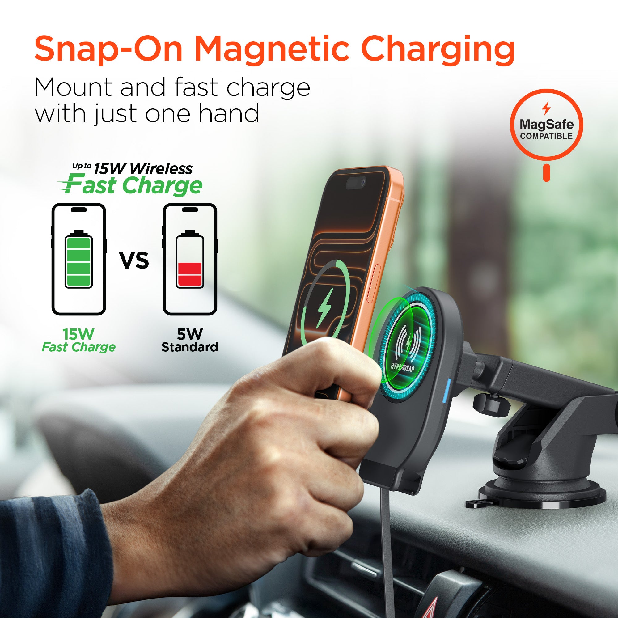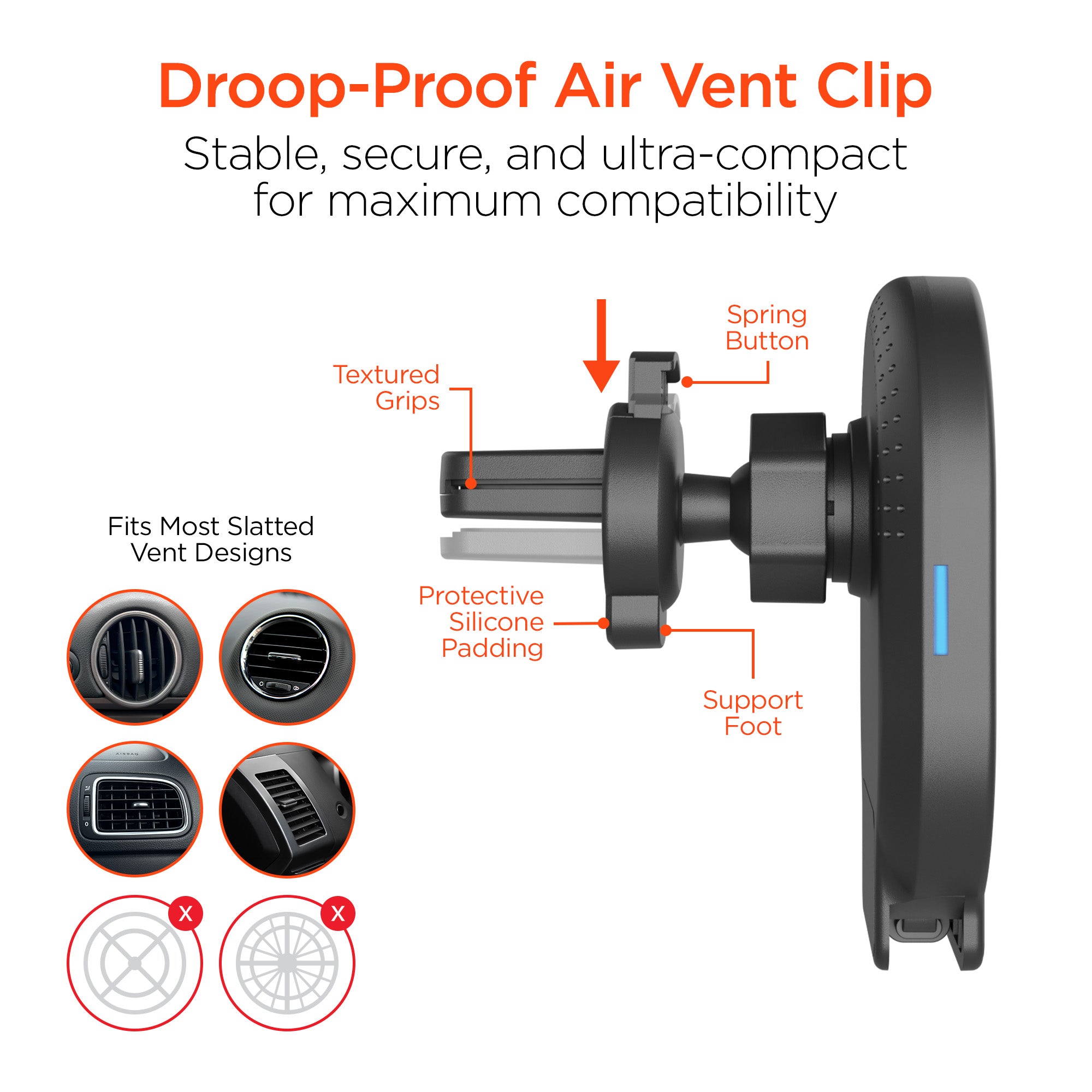 Gravity 15W Wireless Fast Charging Mount | Vent + Dashboard + Windshield | Black