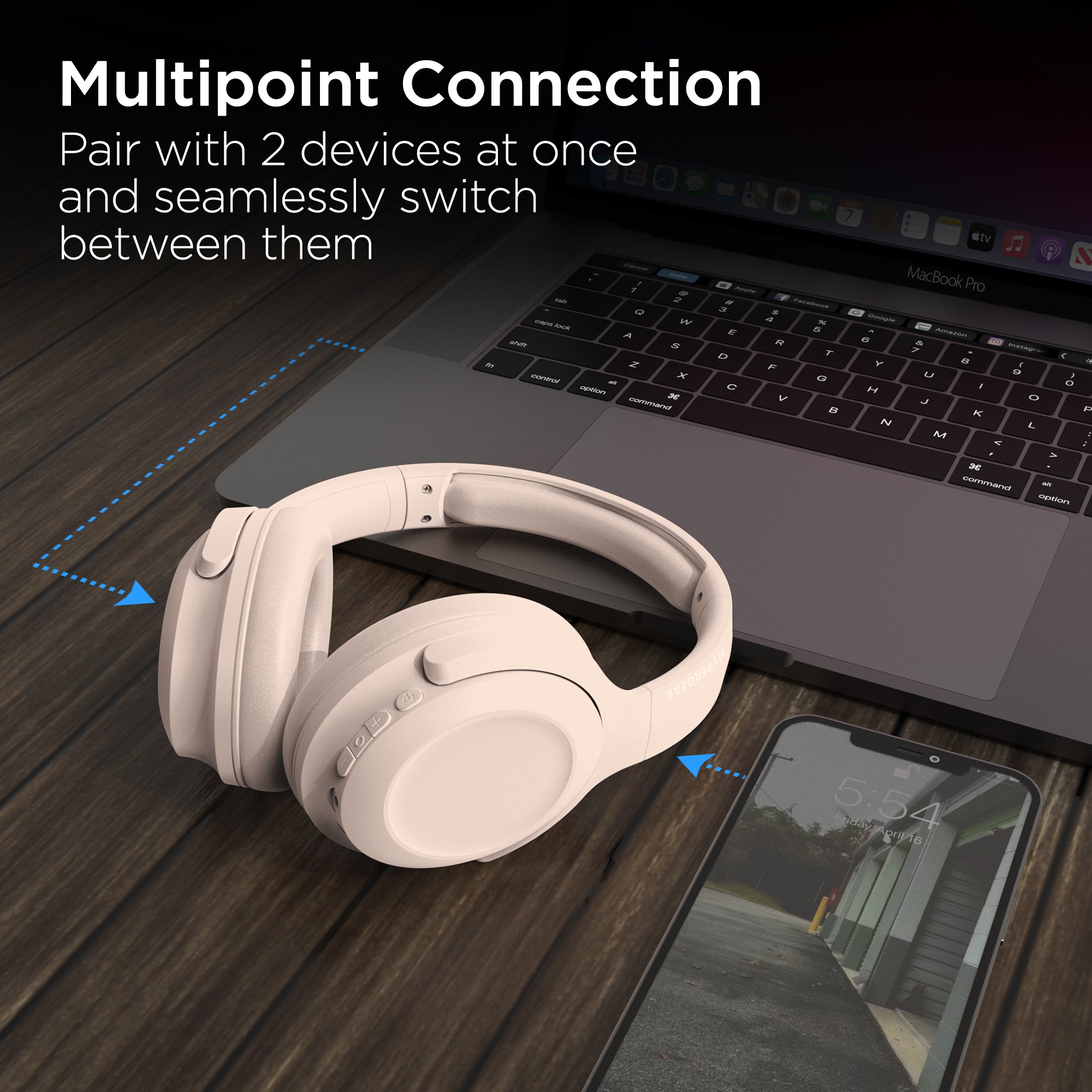 Pair with 2 Bluetooth-enabled devices at once and seamlessly switch between them. Stream music from your phone, answer a video call on your laptop, and go right back to your music when it’s done – all without touching a single button on your headphones.