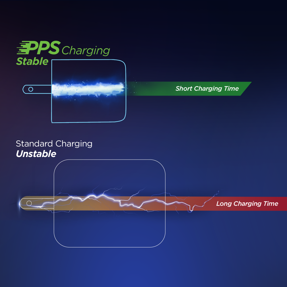 Programmable Power Supply (PPS) support for compatible phones allows the charger to make micro-adjustments throughout the charging cycle that boost its energy efficiency while also protecting your battery from unhealthy levels of heat buildup.