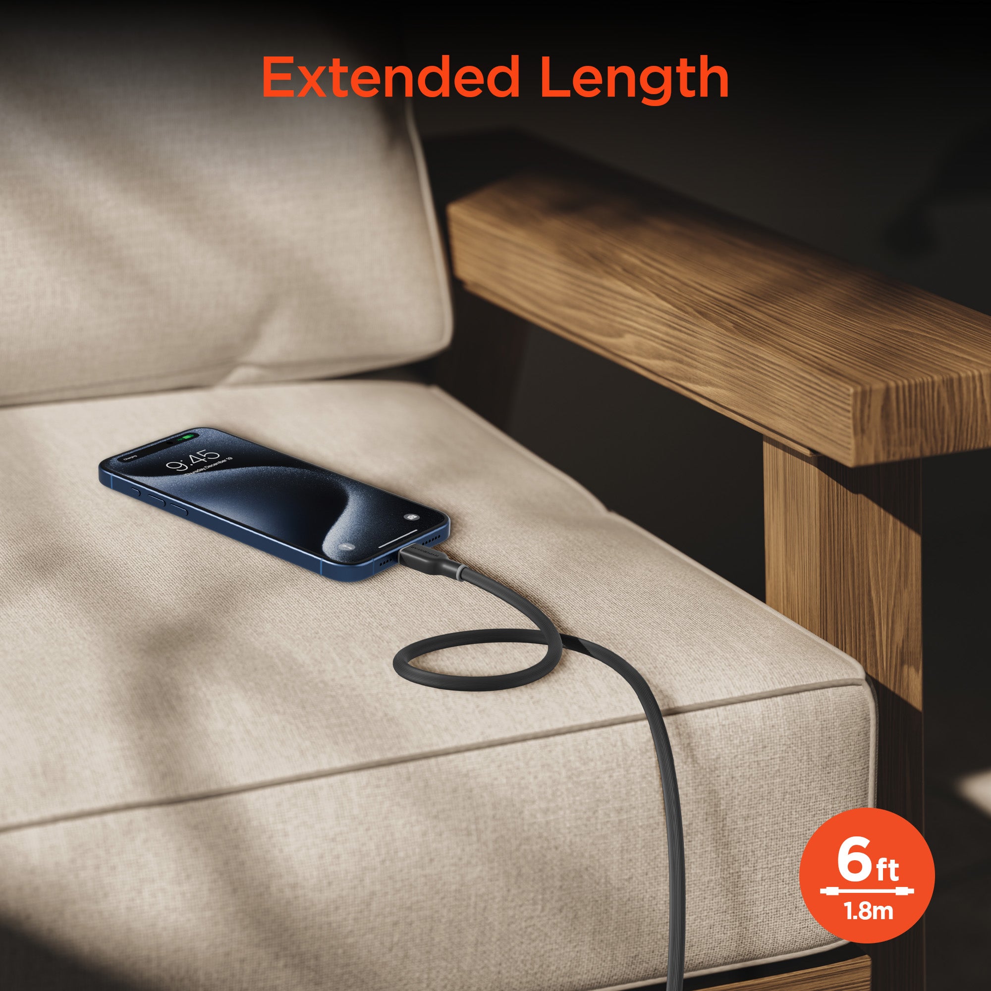Reach from the outlet to your desk, to your couch, or to your backseat passenger. Includes a silicone cable strap for easy organization when you’re on the go.