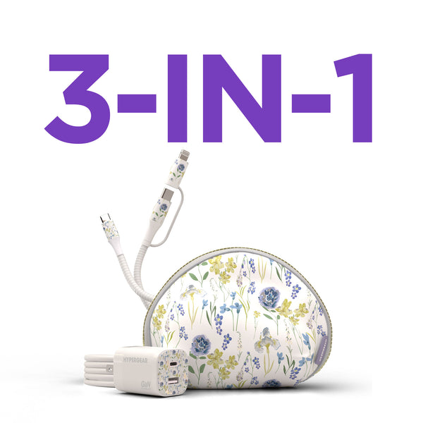 TECHcessories | 30W USB-C PD Charging Kit with Travel Pouch | Floral